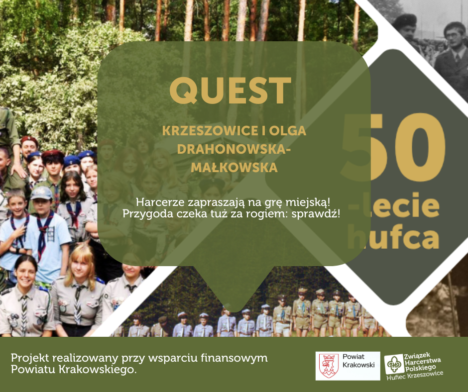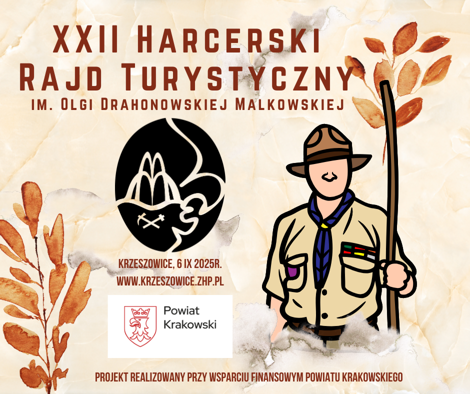 Z okazji jubileuszu 50-lecia powstania Hufca ZHP w Krzeszowicach zorganizowaliśmy w sobotę 6 września (przy wsparciu finansowym Powiatu Krakowskiego) XXII Harcerski Rajd Turystyczny im. Olgi Drahonowskiej-Małkowskiej. Drużyny wzięły udział w czterech trasach dostosowanych do wieku i wykonując różnorodne zadania związane z historią hufca i postacią ważną dla nas – Olgi Drahonowskiej-Małkowskiej, która urodziła się w Krzeszowicach.