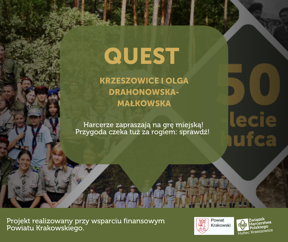 Niedawno obchodziliśmy 50-lecie Hufca ZHP Krzeszowice i właśnie z tej okazji przygotowaliśmy wyjątkową grę miejską, która pozwoli zarówno harcerzom, jak i mieszkańcom, czy turystom lepiej poznać nasze miasto oraz postać druhny Oleńki — współtwórczyni polskiego harcerstwa.